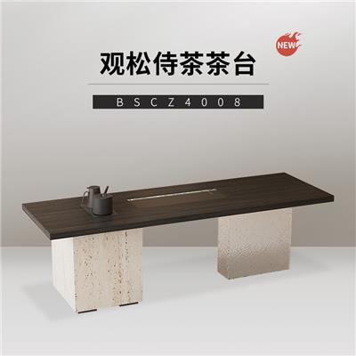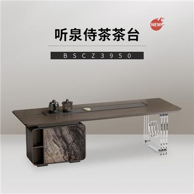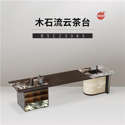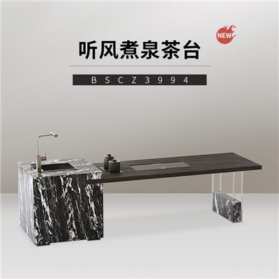 茶台 BSCZ3950 墨灰石茶盘+烟熏色+威尼斯棕岩板