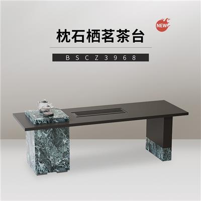 茶台 BSCZ4123 纳秋绿天然石面+黑橡色+乌金石茶盘